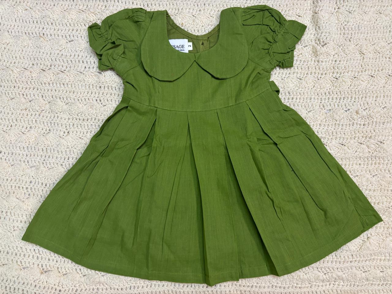 Embrace Timeless Elegance with Our Handwoven Cotton DressThis enchanting green dress is crafted from 100% handwoven cotton, ensuring your little one stays cool, comfortable, and effortlessly stylish. The classic Peter Pan collar adds a touch of vintage charm, while the pleated skirt allows for twirls and play.